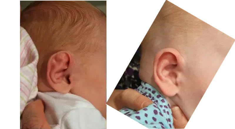 Διπλωμένο (συμπιεσμένο) πτερύγιο αυτιού (Lidding/Lop ear): Το άνω μέρος του αυτιού γέρνει προς τα εμπρός και προς τα κάτω, δημιουργώντας την εντύπωση ότι ένα «καπάκι» καλύπτει το άνω μέρος του πτερυγίου.