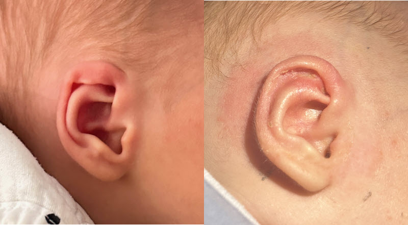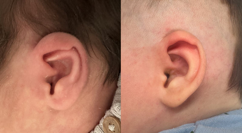 Ελικοειδής δυσμορφία (Helical deformity): Ανωμαλίες στο σχήμα ή ανεπαρκής ανάπτυξη στην περιοχή του εξωτερικού άκρου του αυτιού (έλικας), που συχνά οδηγούν σε ανώμαλο περίγραμμα.